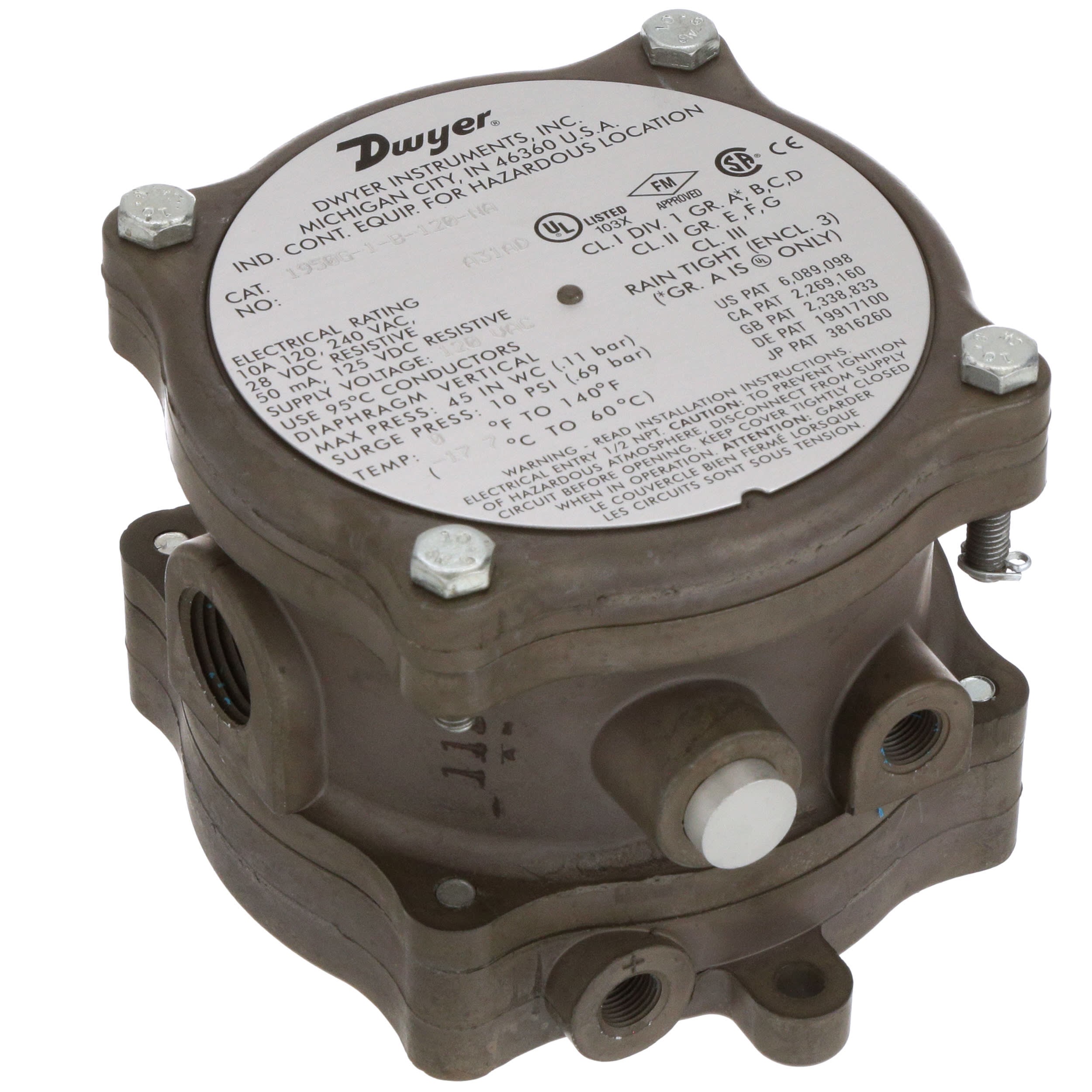 1950G-1-B-120-NA Explosion-proof differential pressure switch, range .4-1.6″ w.c.