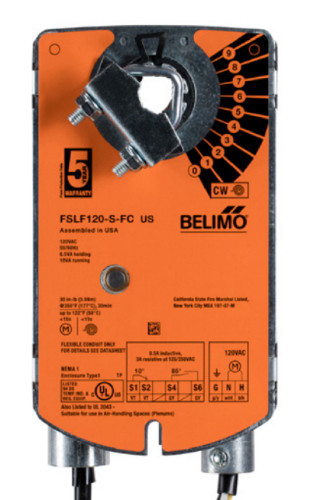 FSLF120-S US Fire & Smoke Actuator, 30in-lbs from 32°F-350°F, Spring rtn, AC120V, On/Off, 2xSPST - FSLF120-S US