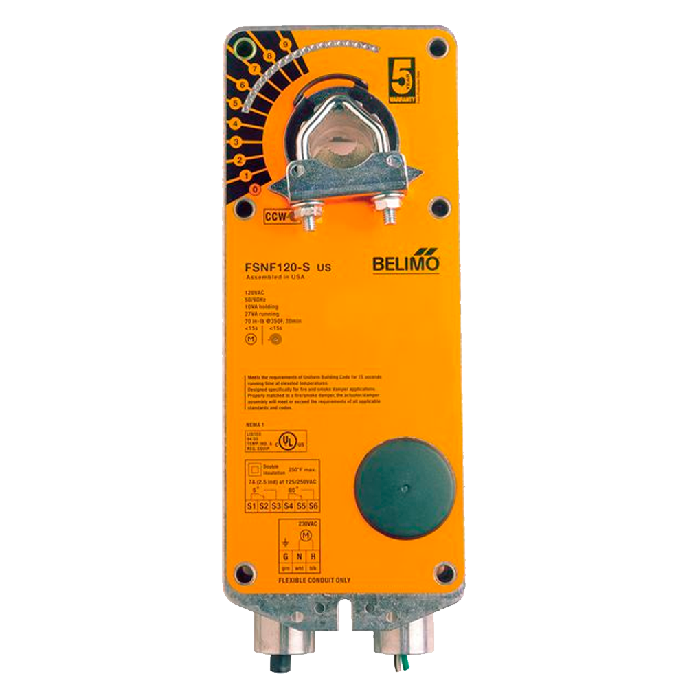 FSNF120-S US Fire & Smoke actuators, 70 in-lbs [8 Nm] from 32°F to 350°F [0°C to 177°C], Spring retur