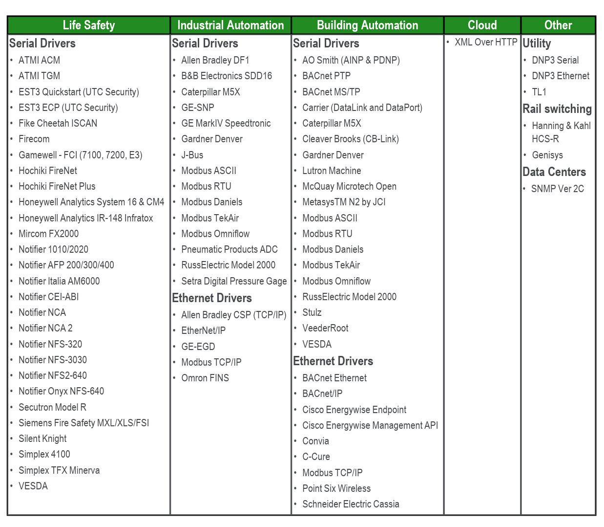 | Other | Classic QuickServer: Configuration/Diagnostic utilities Capacity: 250 -5,000 points Table, wall, or DIN rail mountQuickServer: Configuration/Diagnostic utilities Capacity: 250 -5,000 points DIN rail mount |
